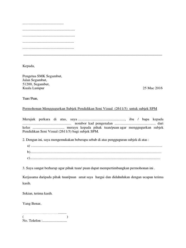 Surat Gugurkan Subjek Ting 3 Pdf